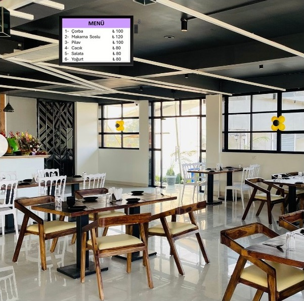 Since it works stand-alone without cloud hosting, just a screen with an HDMI port is enough to have a signage spot at the desired location and show the menu price list that sways in case it is larger than the screen size.